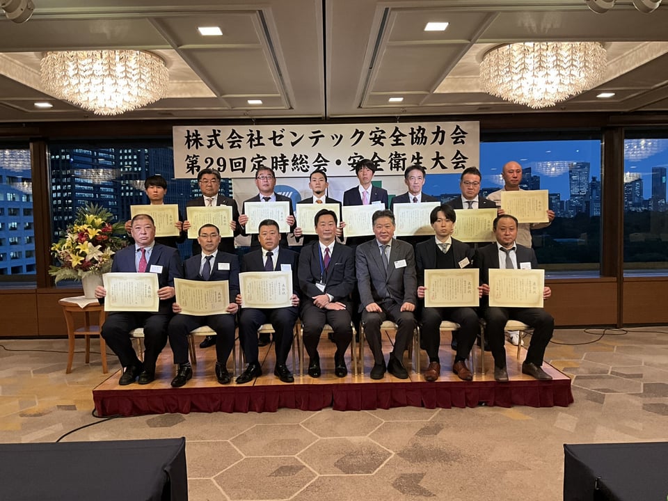 2025年10月31日 ㈱ゼンテック安全協力会 第29回定時総会・安全衛生大会を開催しました。 2025年10月24日、㈱ゼンテック安全協力会 第29回定時総会・安全衛生大会を都内ホテルにて開催しました。安全衛生に対する意識をより深めると共に、協力会の結束を高める事ができました。また、安全対策活動に対し高い貢献のあった協力会社様への優良表彰を実施しました。